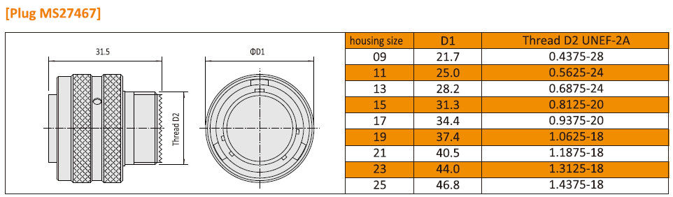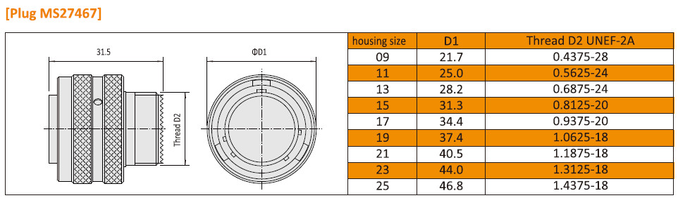 Amphenol MIL-DTL-38999 I シリーズの寸法ミル規格JY27467 ミリタリー 丸型コネクタ